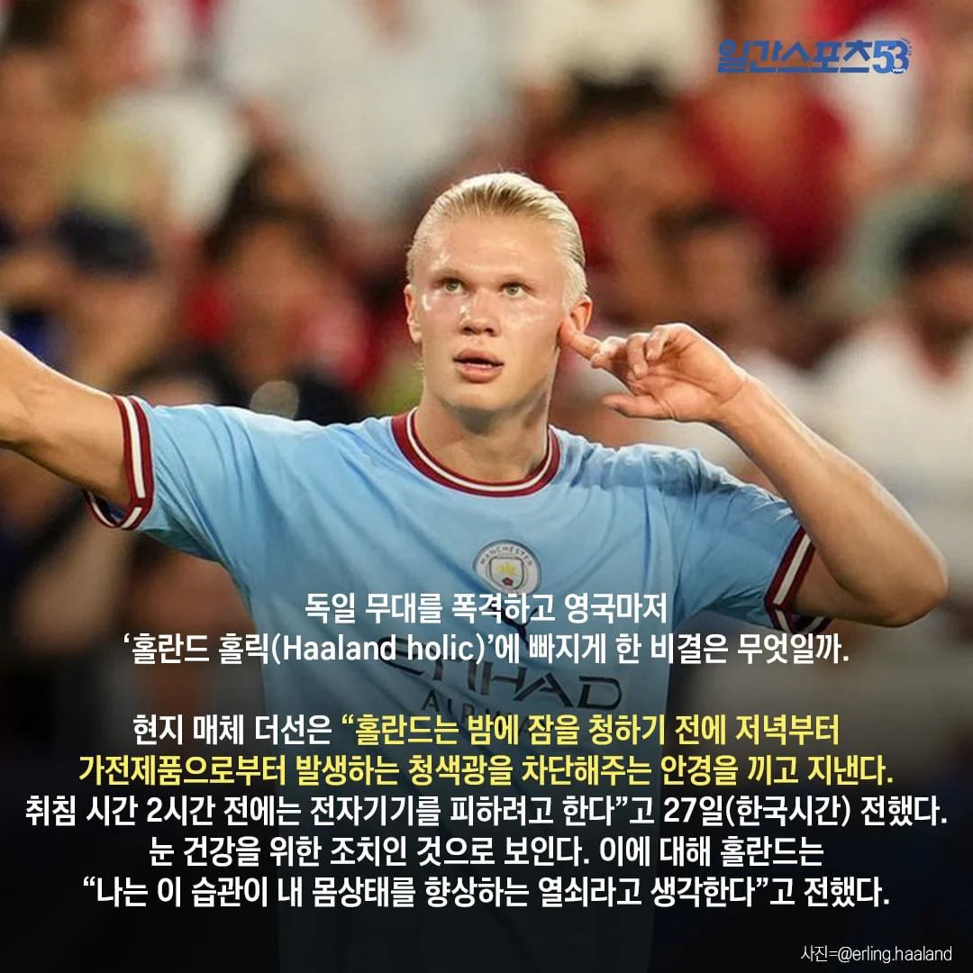 엘링 홀란드 선수는 노란색 프리미엄 블루라이트 차단 안경을 통해 눈을 보호해야 하는 것의 중요성을 알고 있습니다!
